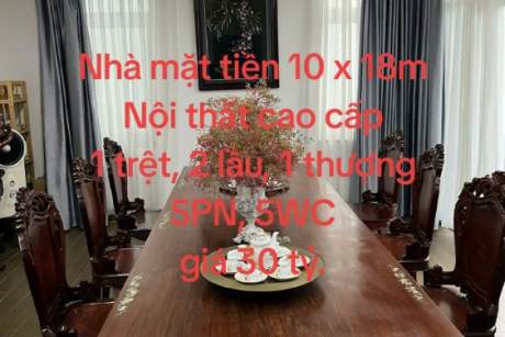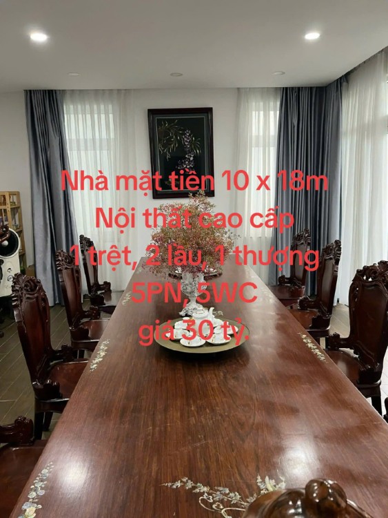 Nhà mặt tiền làm ăn buôn bán tốt với diện tích 10x18m. Nội thất cao cấp, xây dựng 1 trệt, 2 lầu với 5 phòng ngủ, 5 WC.