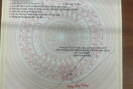 Vị trí:Thuộc phường Tương Bình Hiệp, TP Thủ Dầu MộtĐường bê tông xe hơi lưu thông, thông thoángCách đường Lê Chí Dân khoảng 50mKhu dân cư hiện hữu, an ninh, tiện ích xung quanh đầy đủ- Kết cấu nhà:Nhà 1 trệt 1 lầu3 phòng ngủ, 2 WCPhòng khách, bếp riêngSân để xe hơi- Diện tích:Ngang 5m, dài 15.8mDiện tích đất: ~79m²Thổ cư 60m²- Pháp lý:Sổ hồng riêng, sang tên nhanh- Giá bán: 2 tỷ 490 triệuThương lượng cho khách thiện chí- Phù hợp mua ở gia đình, an cư lâu dài hoặc đầu tư giữ tiền tại trung tâm Thủ Dầu Một.- Thương lượng chỉnh chủ 0901797916 Bảo