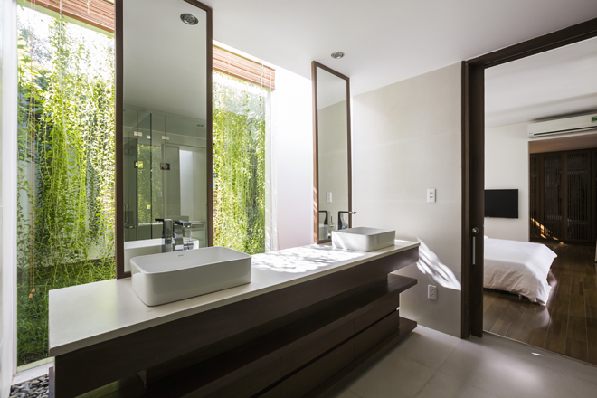 Những khoảng không nhà xen lẫn những rèm cây xanh mát giúp người ở hòa mình với thiên nhiên ở mọi thời điểm.