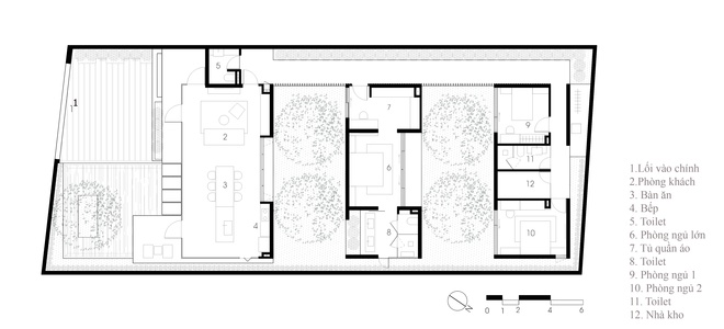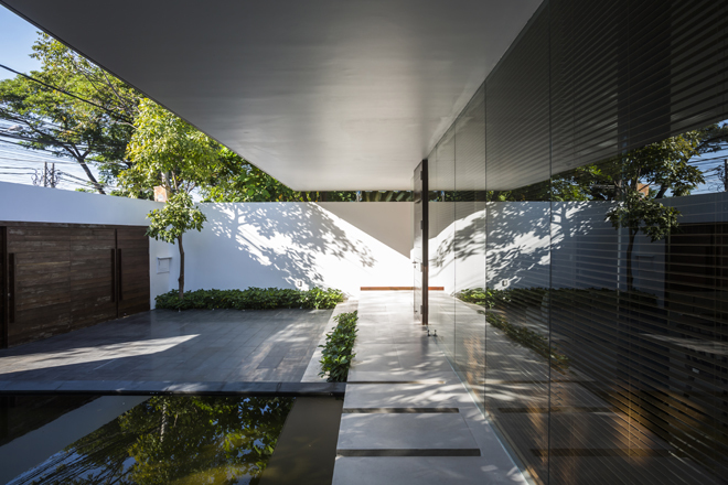 Ngôi nhà chỉ có một tầng, với các căn phòng giống như các “hộc” chứa đựng công năng sử dụng bên trong, xen giữa là các “hộc” cảnh quan.